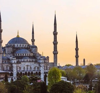 Our first stop the next day was within walking distance, at two of the most famous mosques in the world, both set close to each other in an attractive park. Unfortunately, the Blue Mosque was undergoing extensive renovations and it was not possible to stay and admire this pearl of Ottoman architecture. We then made the short walk to the Hagia Sophia (Church of the Holy Wisdom), one of the most important and imposing religious buildings in the world. Constructed as a church in the sixth century, its massive domed basilica was to provide the blueprint for countless Ottoman-era mosques. Glittering with gold mosaics and richly endowed with porphyry columns and marble panelling, it became Istanbul’s centre of Islamic worship after the Ottoman conquest of 1453. A museum from 1934, it was controversially turned back into a mosque in 2020 and today visitors have to leave at prayer times. Our guide pointed out some frescoes that have remained from the time that it was a Christian church.